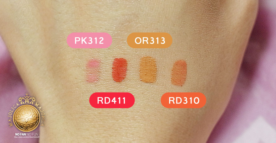 總共有分4個顏色 PK312粉莓蜜 RD411 木莓蜜 OR313 甜橙蜜 RD310 珊瑚蜜
