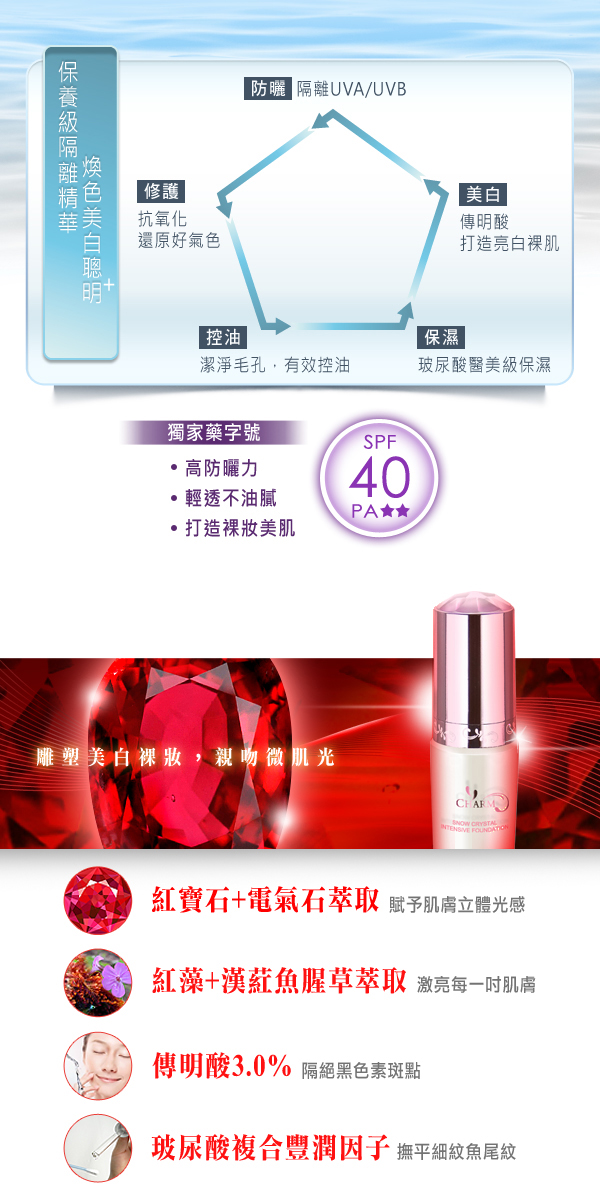 CHARM 極雪智慧煥色美白隔離精華 SPF40