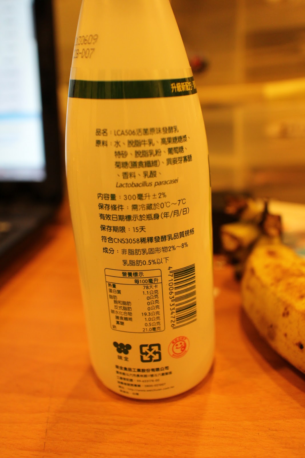 早餐 : LCA 506 優酪乳 300ml 240卡 + 香蕉一根 100卡 = 340 卡
