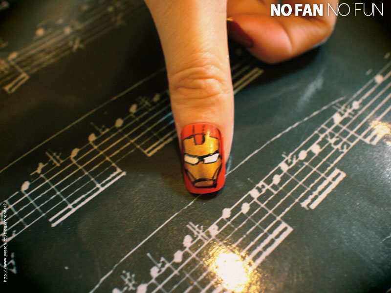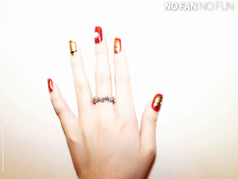 食指的部分也是畫鋼鐵人的頭,不過頭畫的方式變成是只有金紅兩色