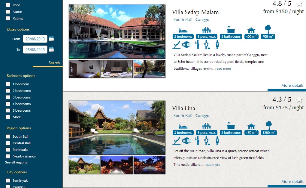 就可以找到幾個專門在租Villa的網站囉!價錢絕對都令人非常滿意!!