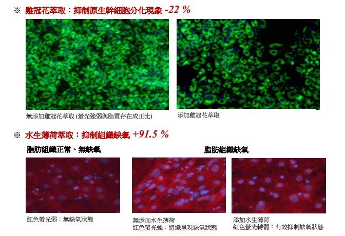 雞冠花萃取則是減緩原生幹細胞分化成為前驅脂肪細胞。