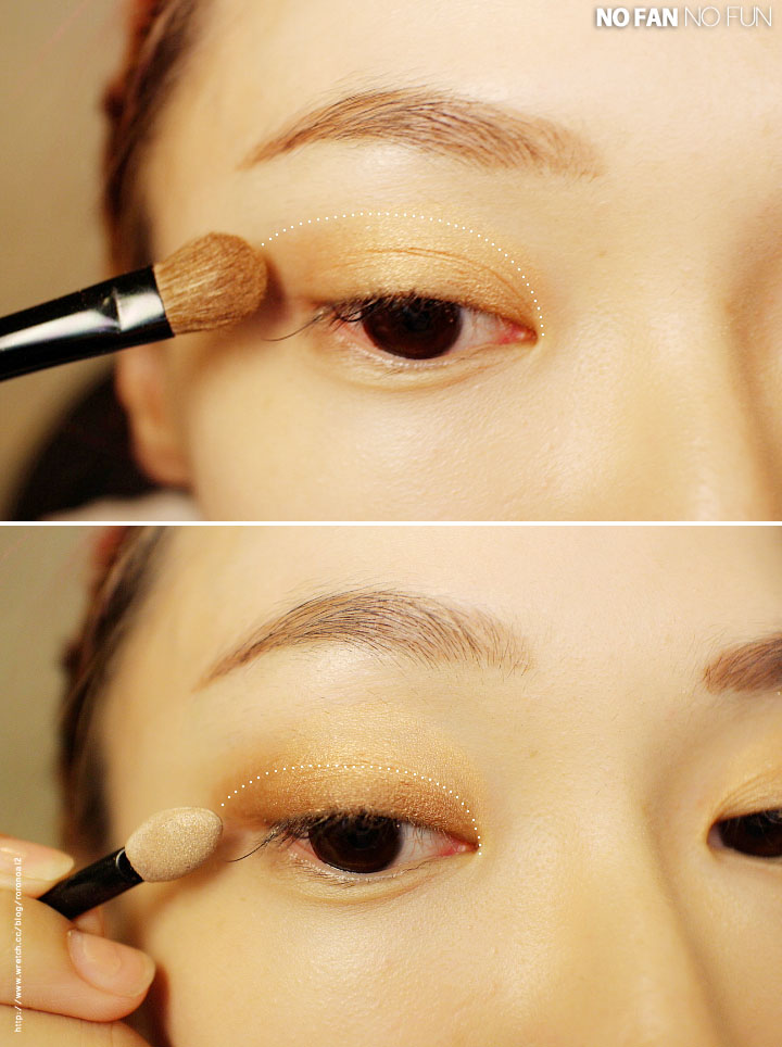 再用比較深的咖啡色畫眼摺內,或者超出眼折外一點點也可