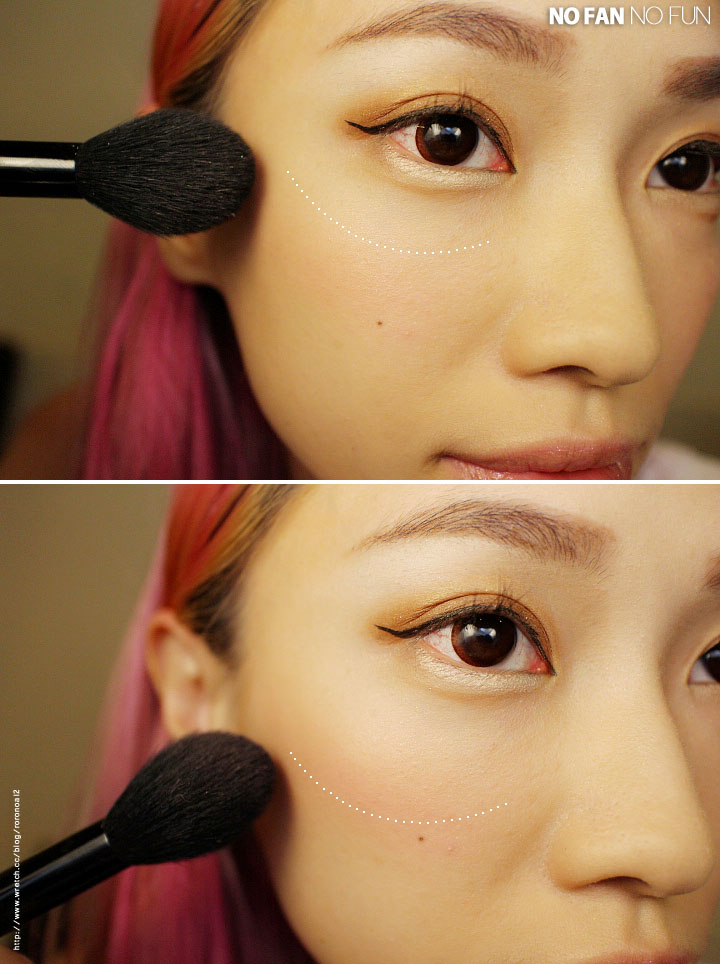 讓臉的五官比較突出,立體感加深,如果你是屬於胖胖臉,也可以利用此方法修容