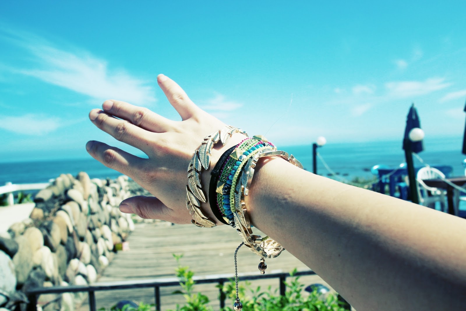 剛剛前幾張在巴里島的泳池照其實也有出現金屬葉片的手環,眼尖的你有發現嘛