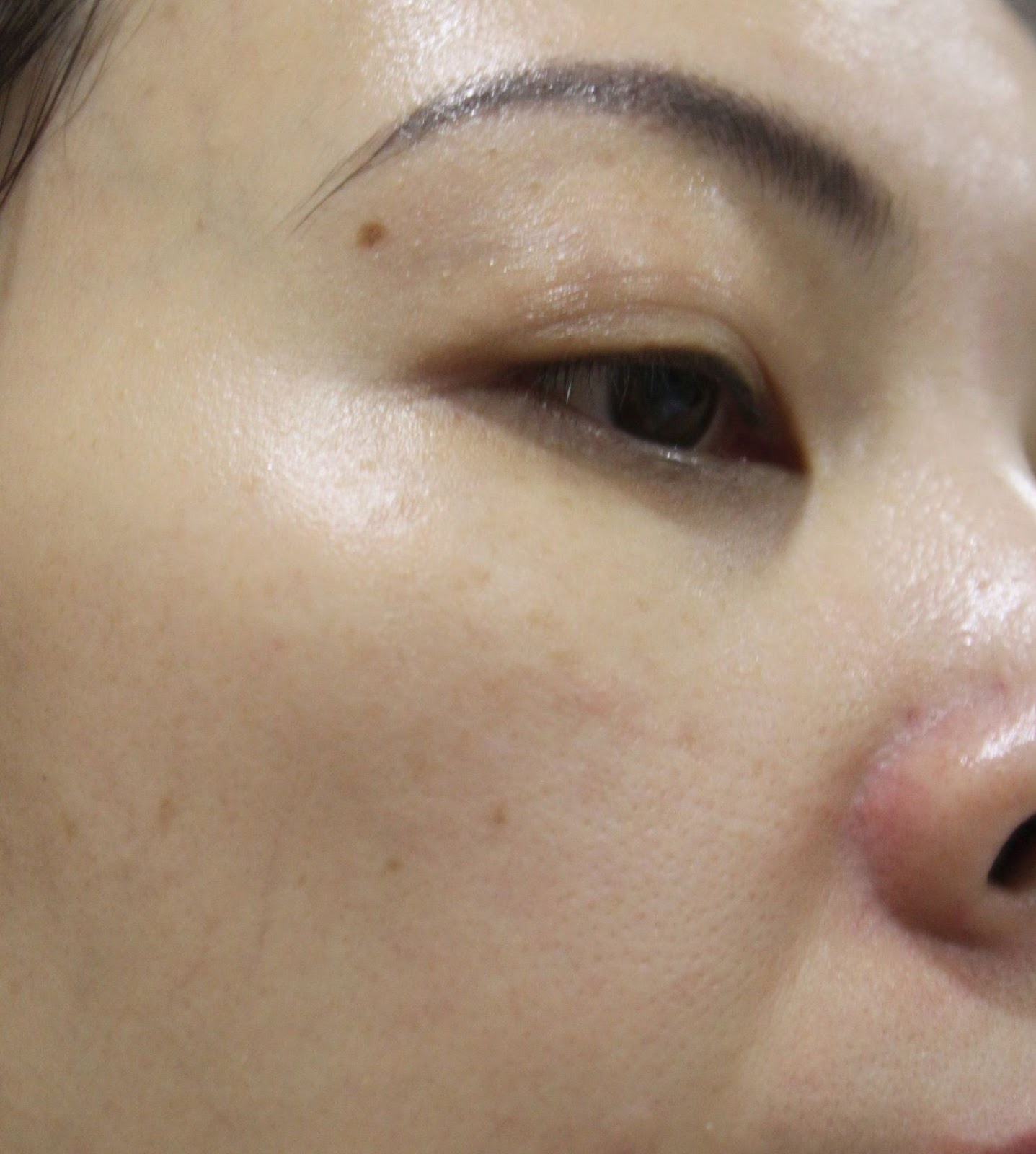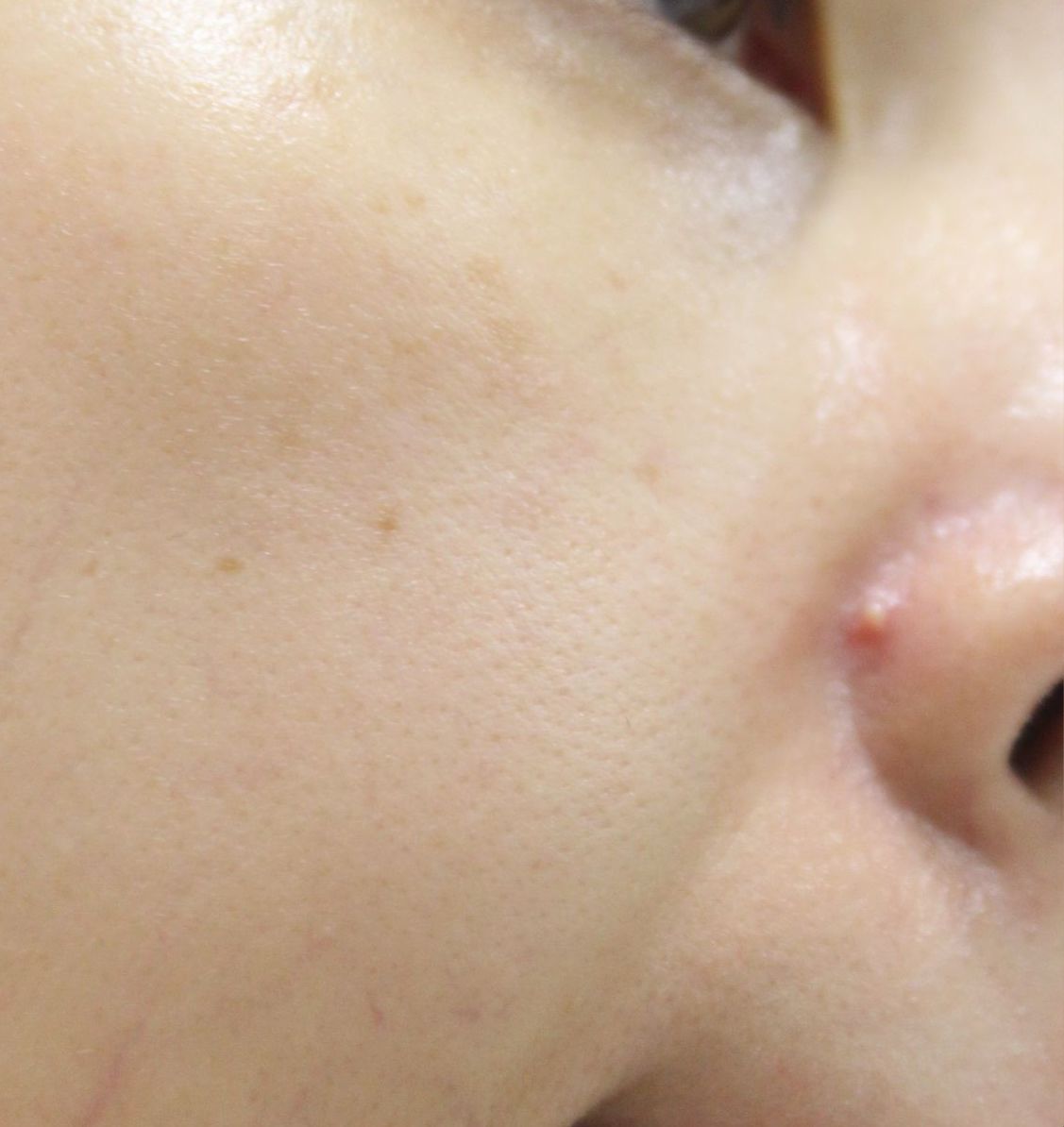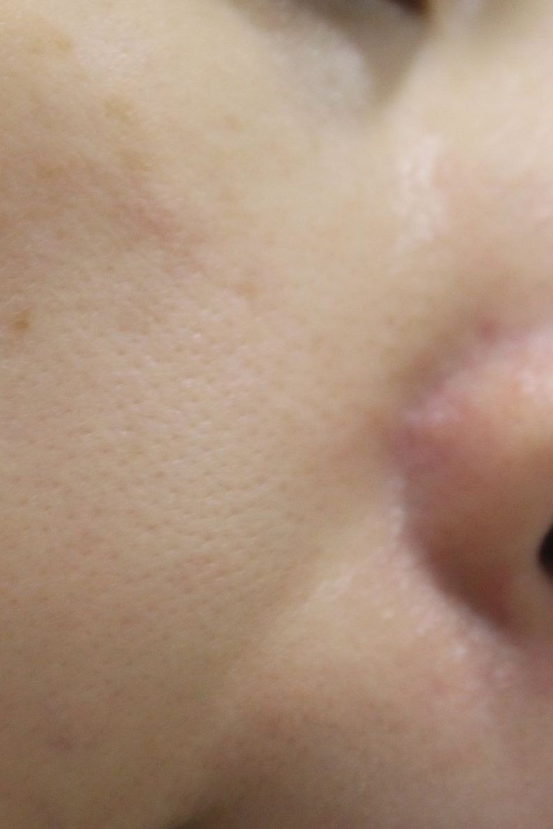 在使用的第一天當天鼻翼旁有一顆即將生成的小痘痘(下圖)