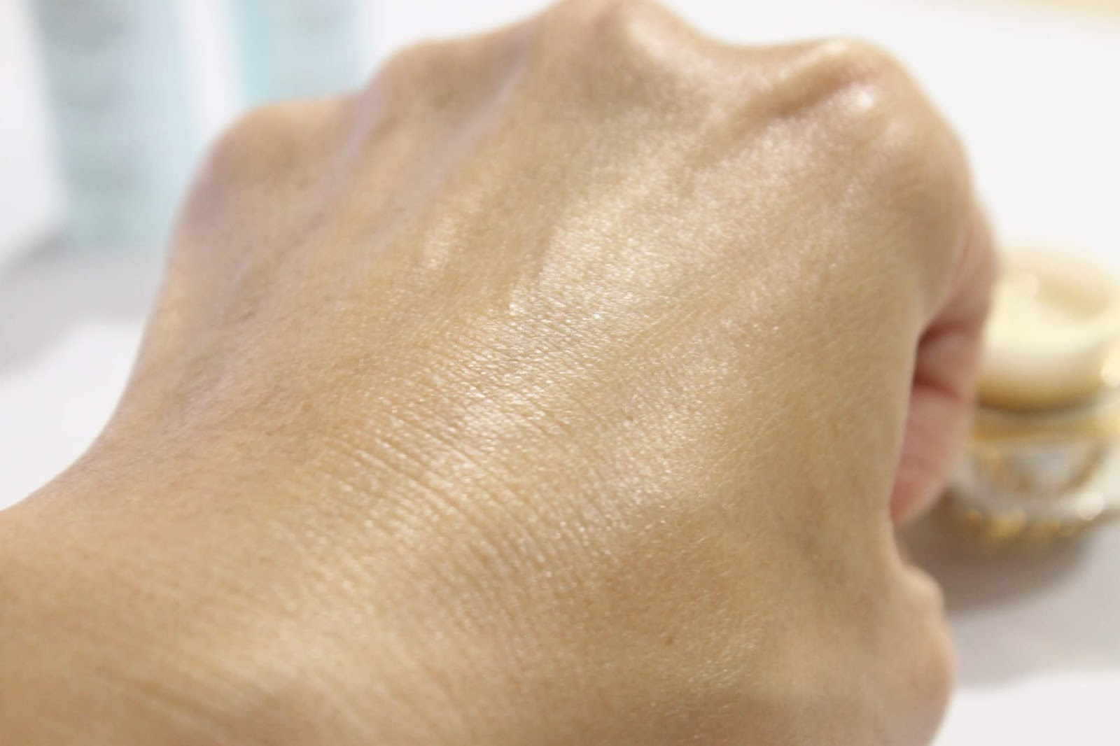 均勻推開後不黏膩的觸感,可以明顯的感覺到皮膚像喝飽了水一樣