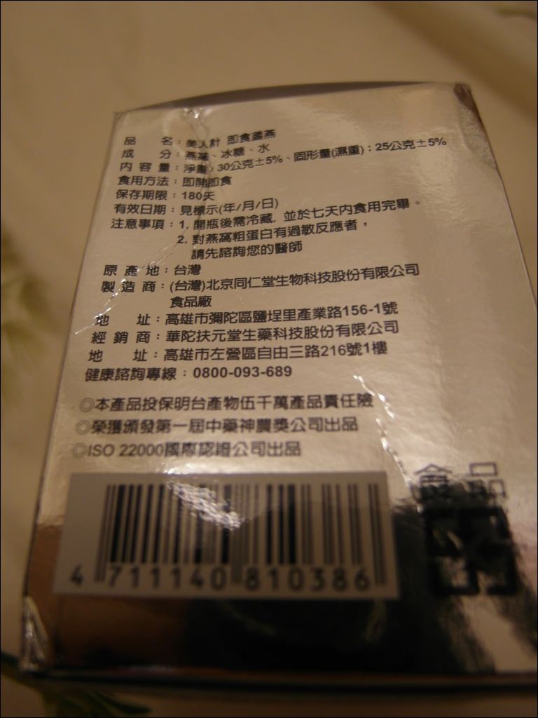 而且燕窩真的很綿密細緻,很真材實料,吃起來大呼過癮啊!看起來裡面的燕窩比水分還多哩!不妨可以加在牛奶和豆漿裡面當作甜品飲用。