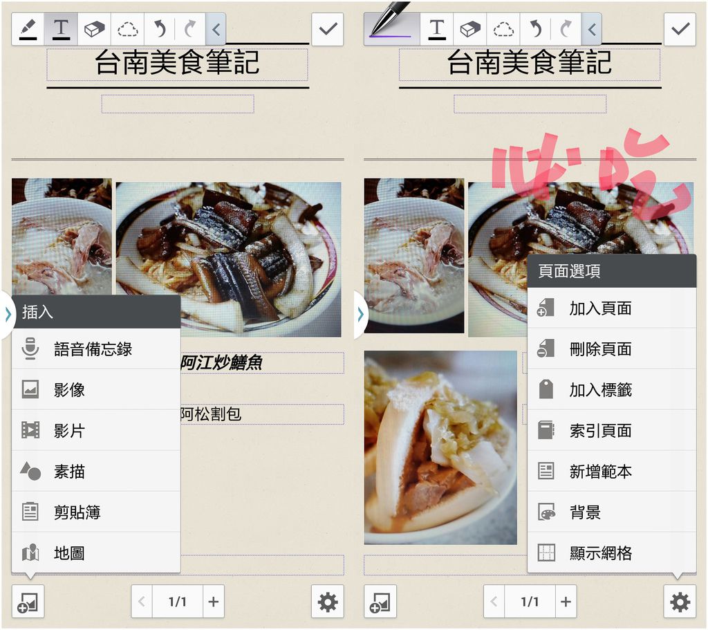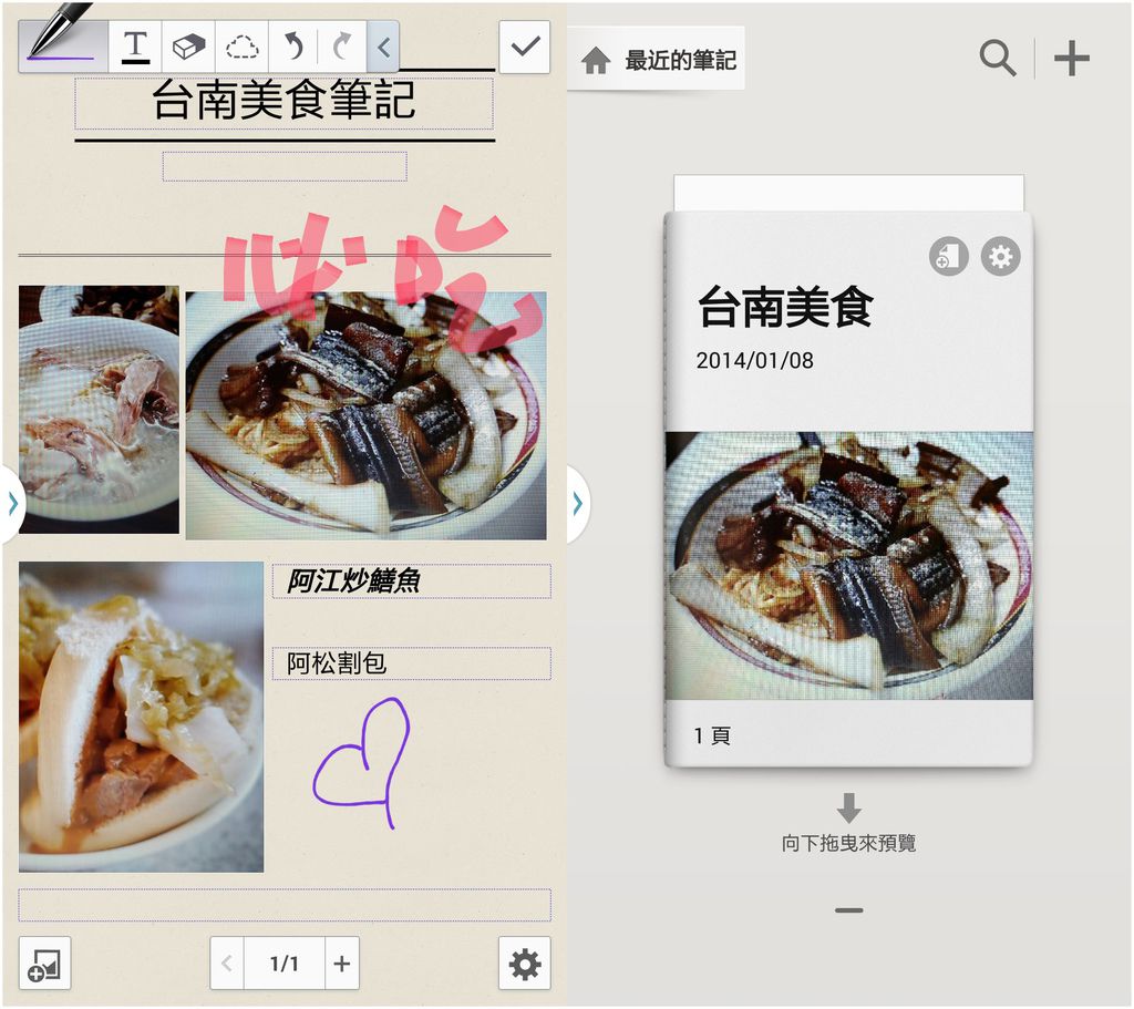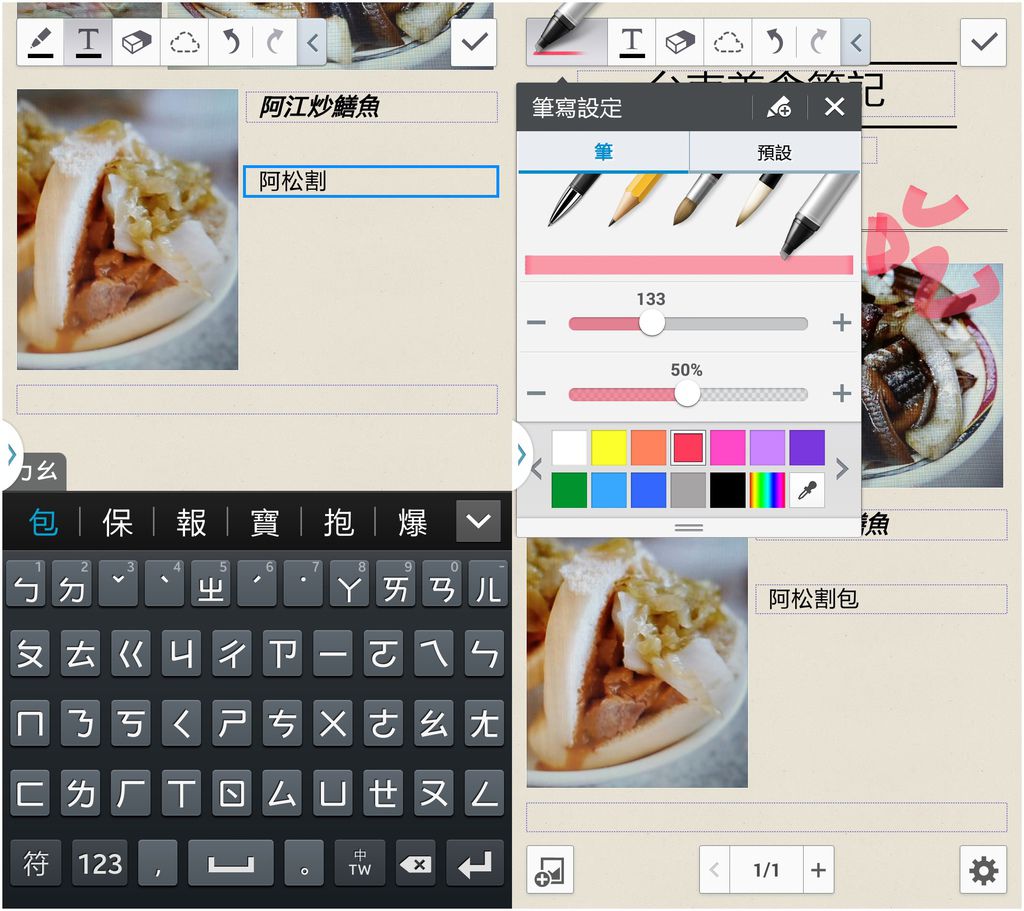 緊接著可以選擇喜歡的美食照片,然後打字編輯或是手寫都可以,
