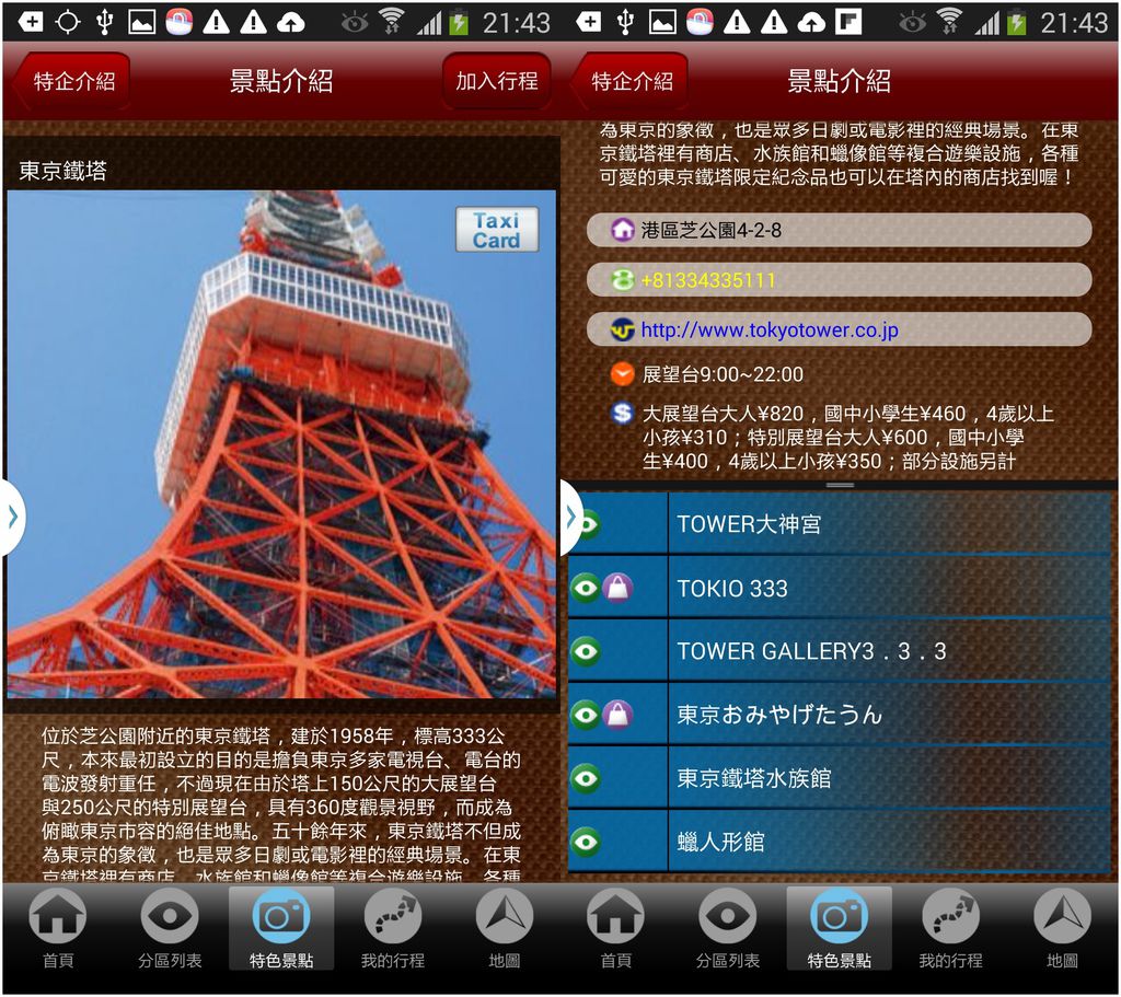 再將喜歡的景點點選右上方的加入行程,艾妮可一共挑選了東京鐵塔 台場 明治神宮
