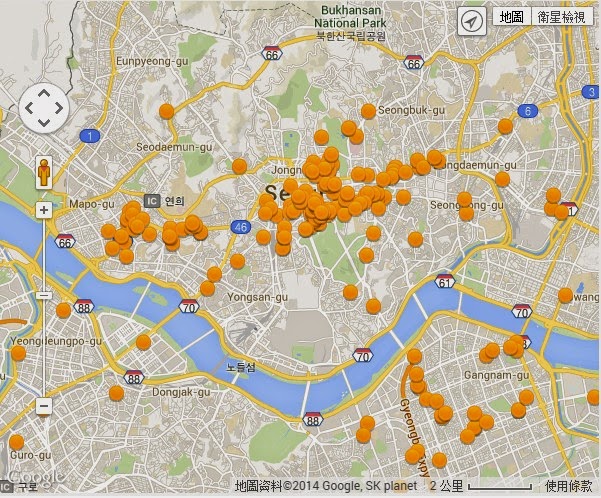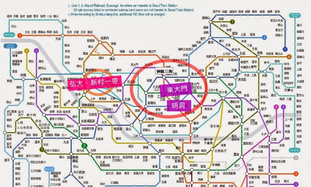 下面是首爾的地鐵路線圖,我圈起來的算是主要的觀光區