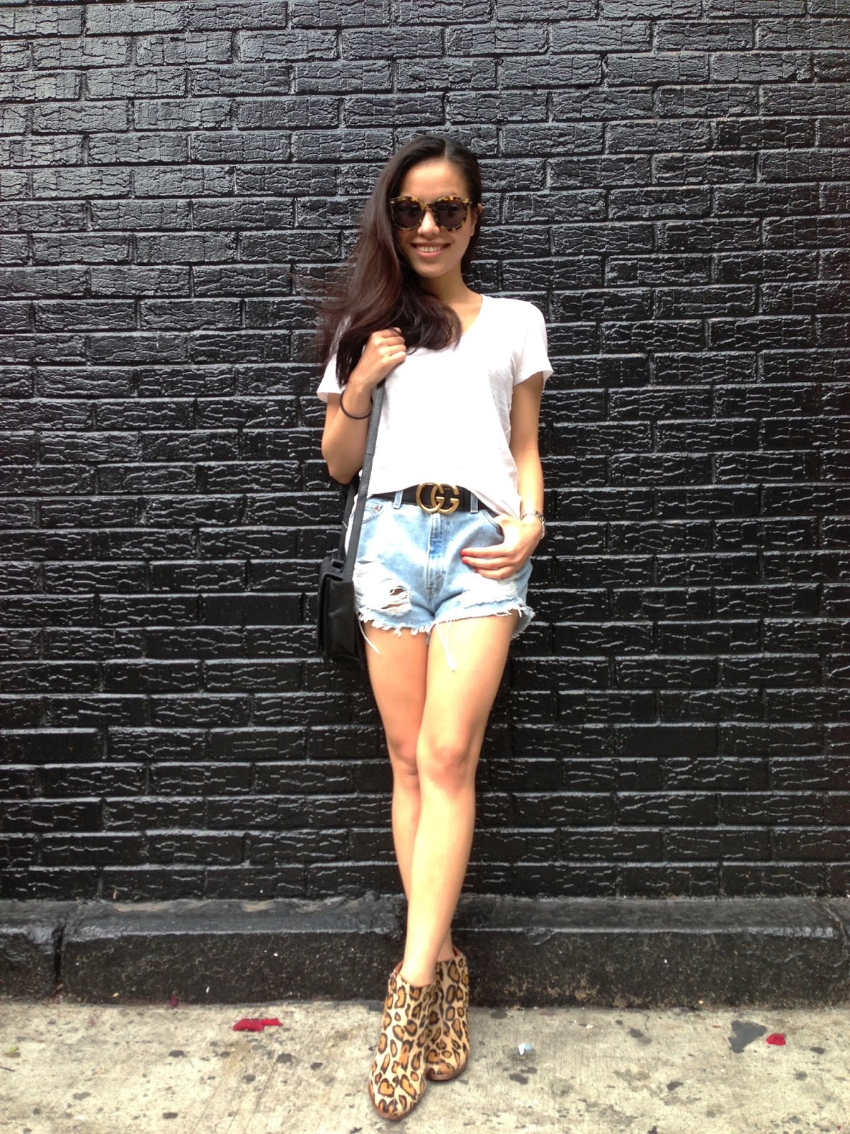 Vintage 牛仔破損短褲(類似款 點這 & 點這 & 點這 & 點這)| Gucci 皮帶(類似款 點這)
