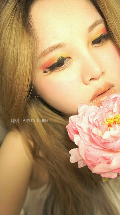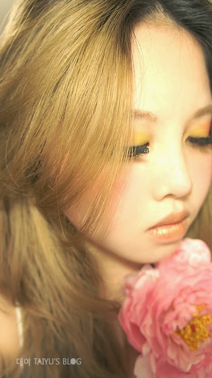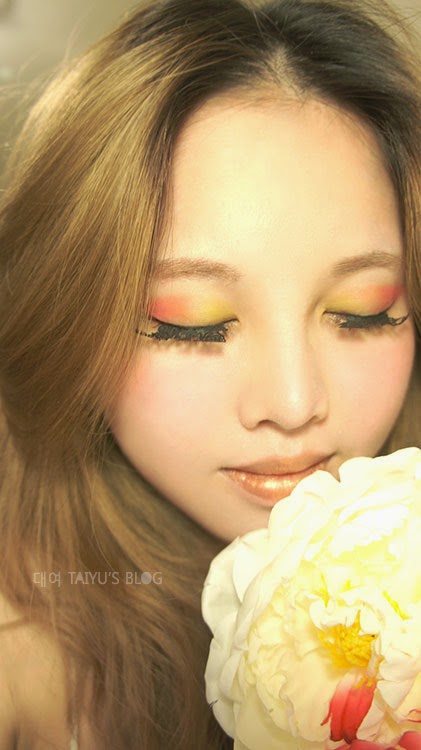 眼影主要是想要呈現花朵的顏色配上綠色的枝葉,