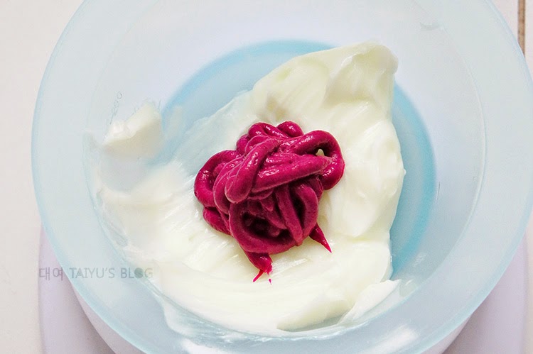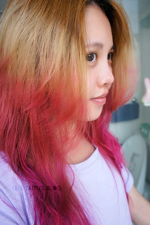 所以染了半個頭之後加了一點藍色進去調配成紫色。