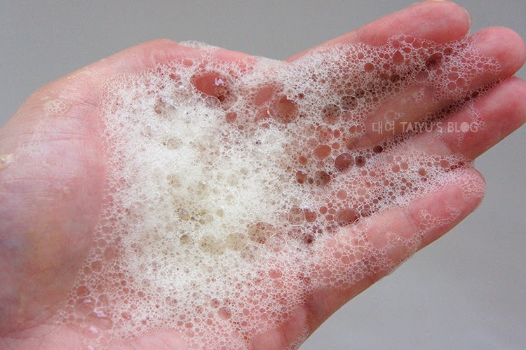 泡泡綿密細緻,因為皂體本身顏色的關係,