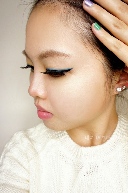 再用黑眼線液來補上一小段眼尾讓他平行。