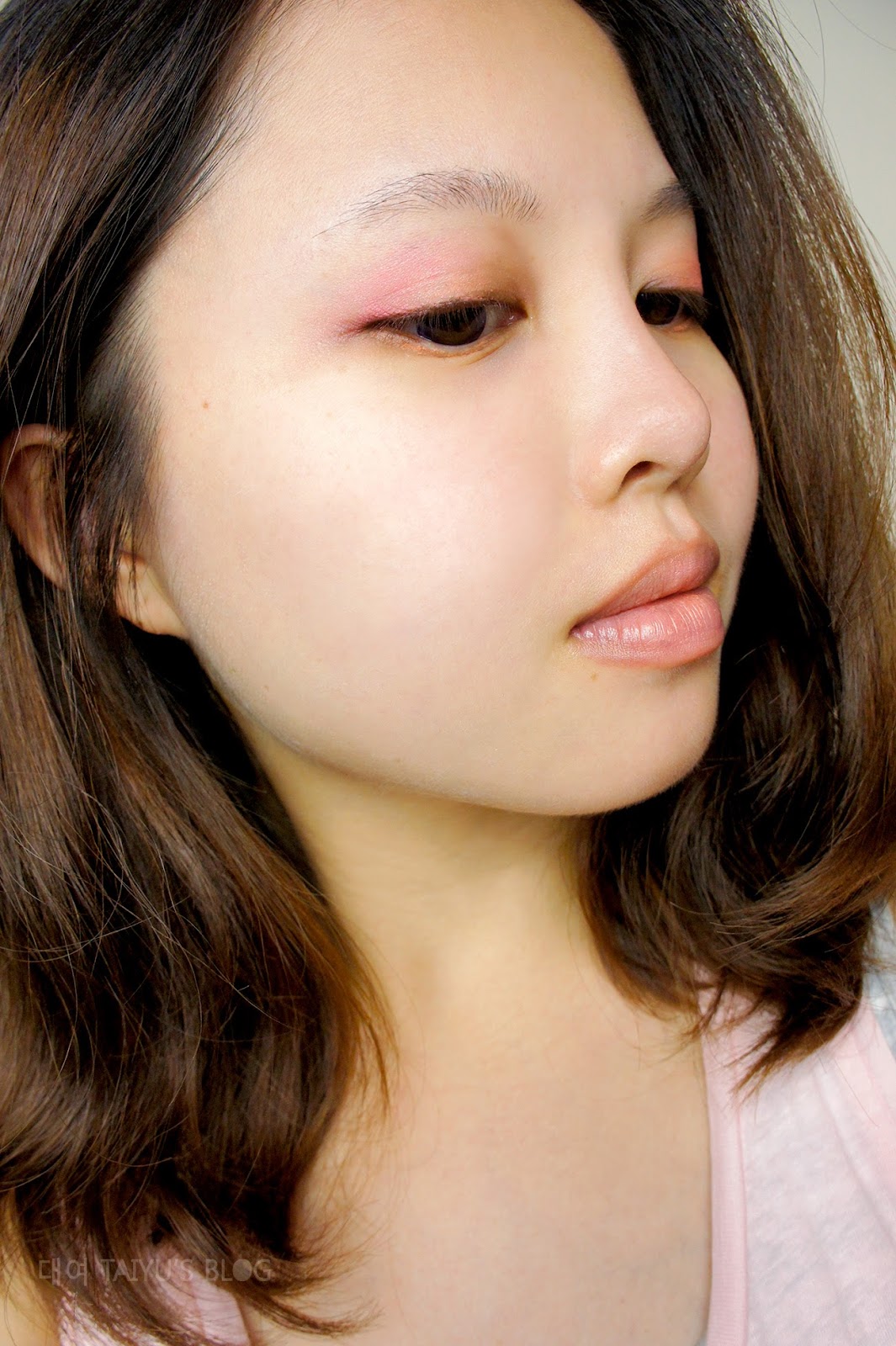 粉X橘色的眼影似乎讓整個眼神感覺蠻柔和的也好適合春天夏天,