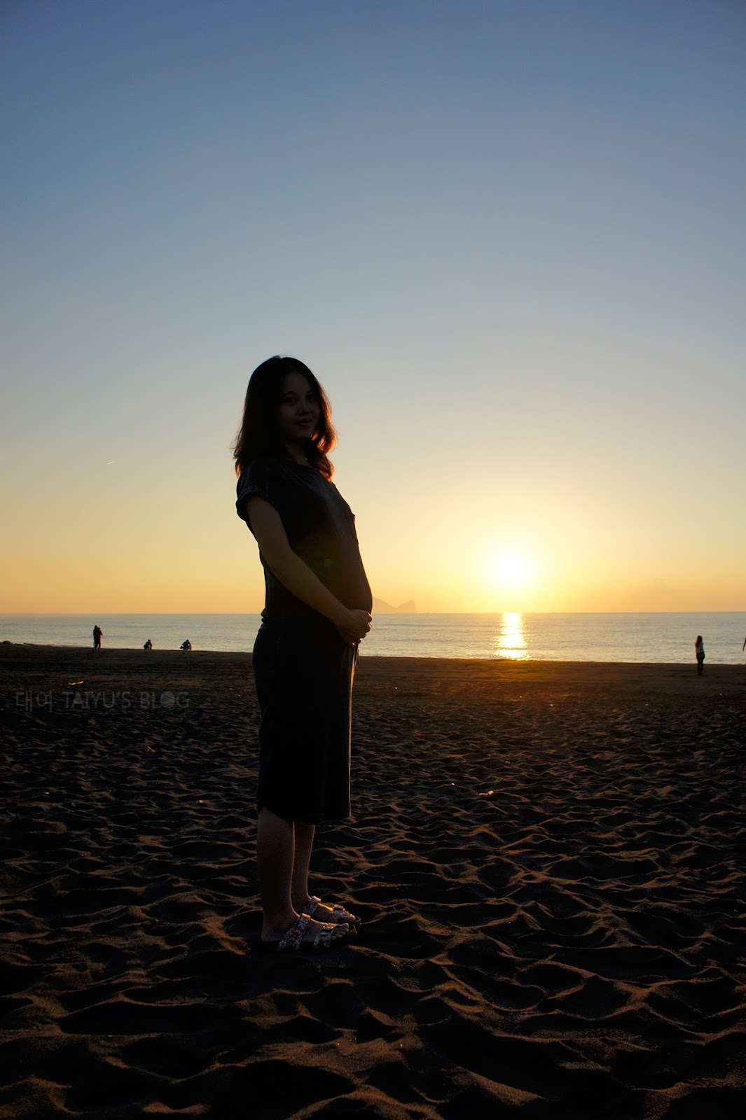 等待一下子太陽就慢慢從龜山島旁升起放射光芒照亮整個海灘~~(✪ω✪)