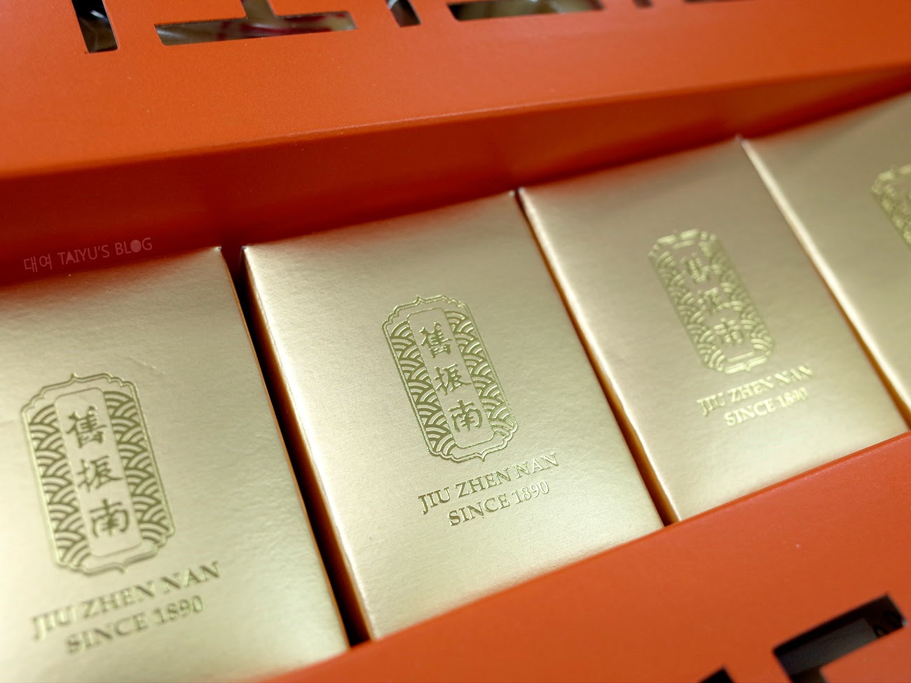 鳳梨酥有獨立的金色外包裝小盒子,
