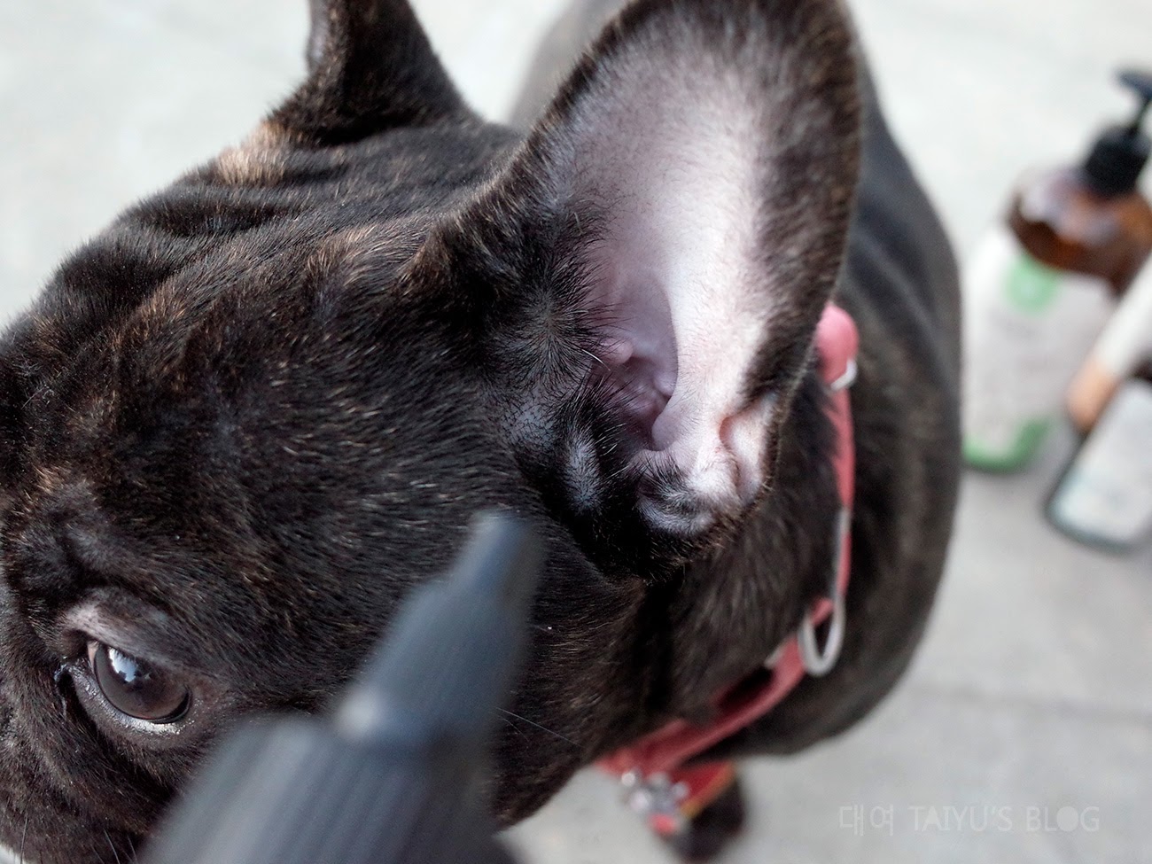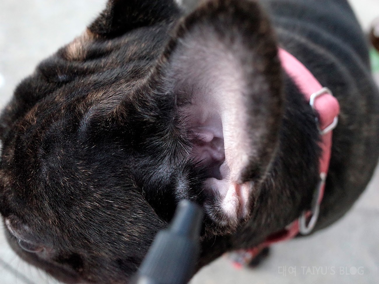 放開之後狗狗自然反應會甩頭,再用棉花把耳朵外殼擦乾淨即可,