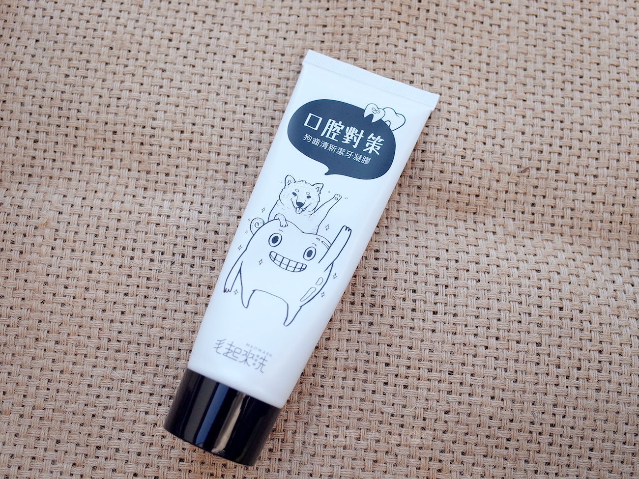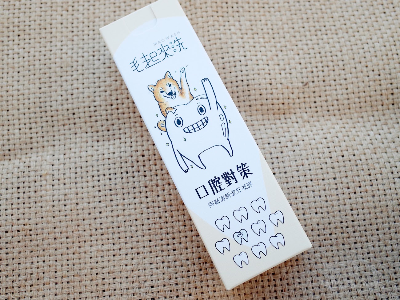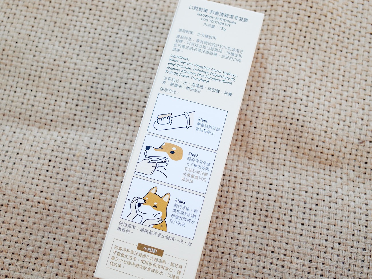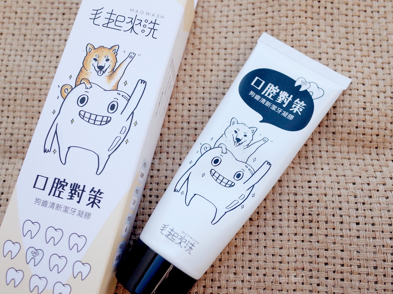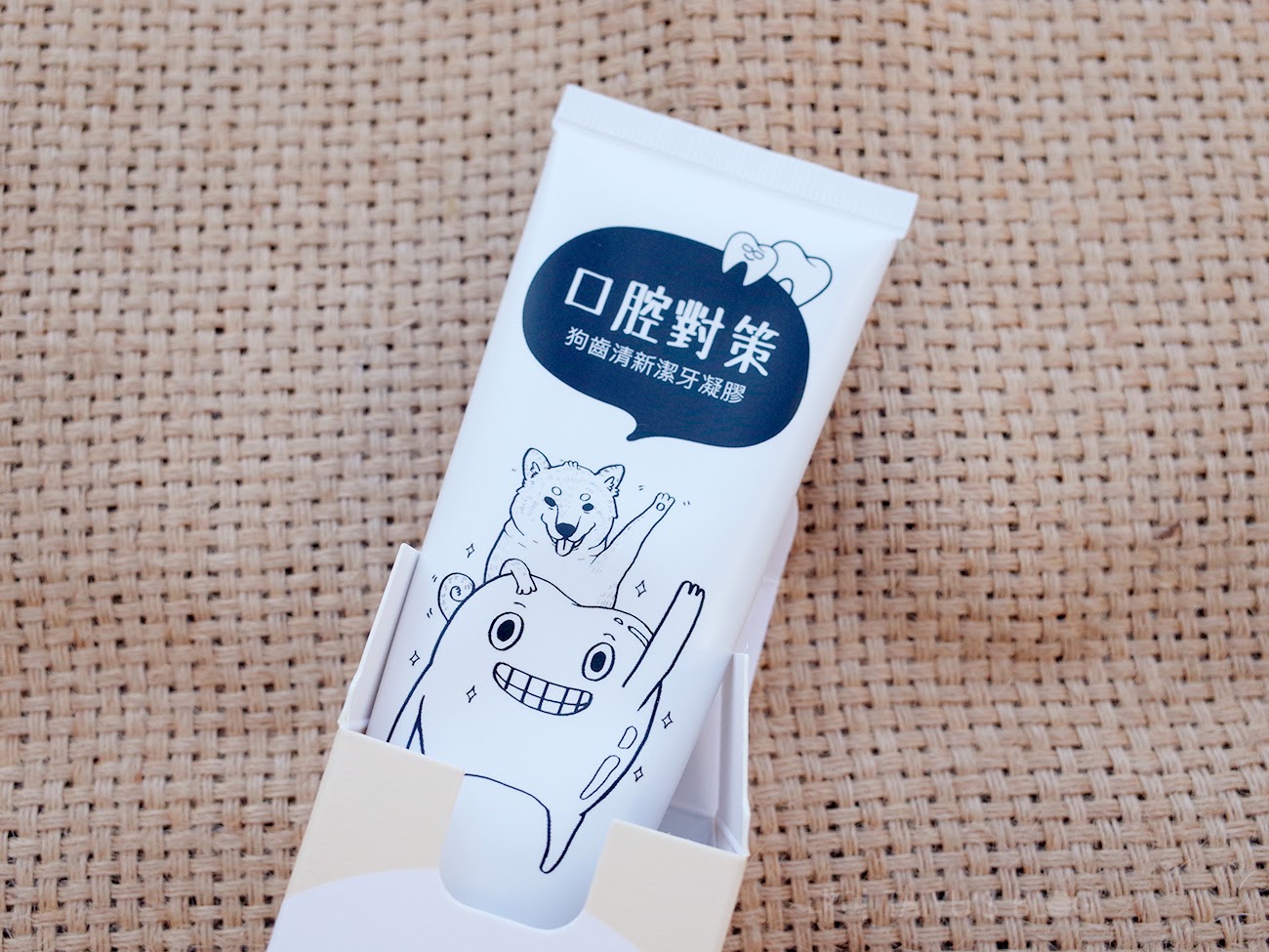 潔牙凝膠背面的小圖也好可愛XD 一隻柴柴抱著牙齒