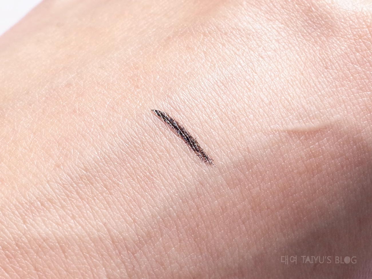 試畫在手背上,很滑很好畫,試畫很小一條因為它極細阿