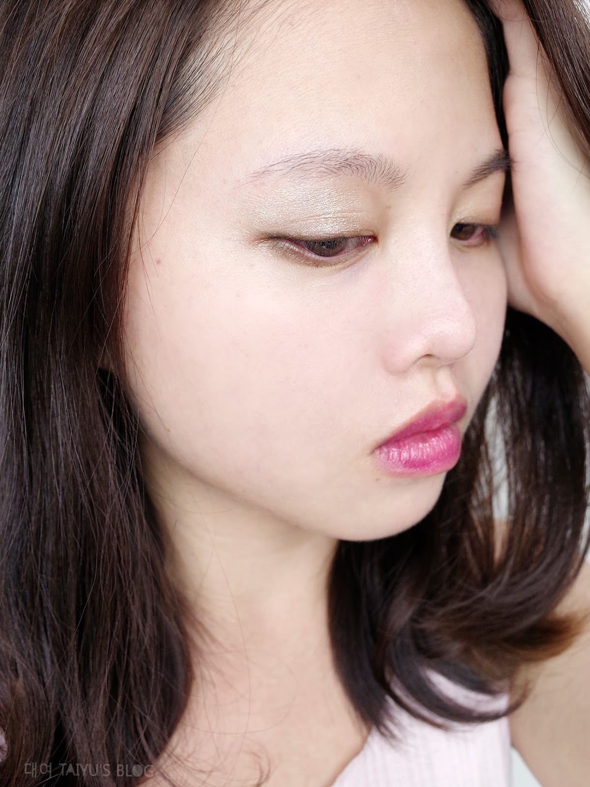 原本我覺得白色珠光眼影顯色的太過分,但整體搭配好像也沒那麼誇張是吧