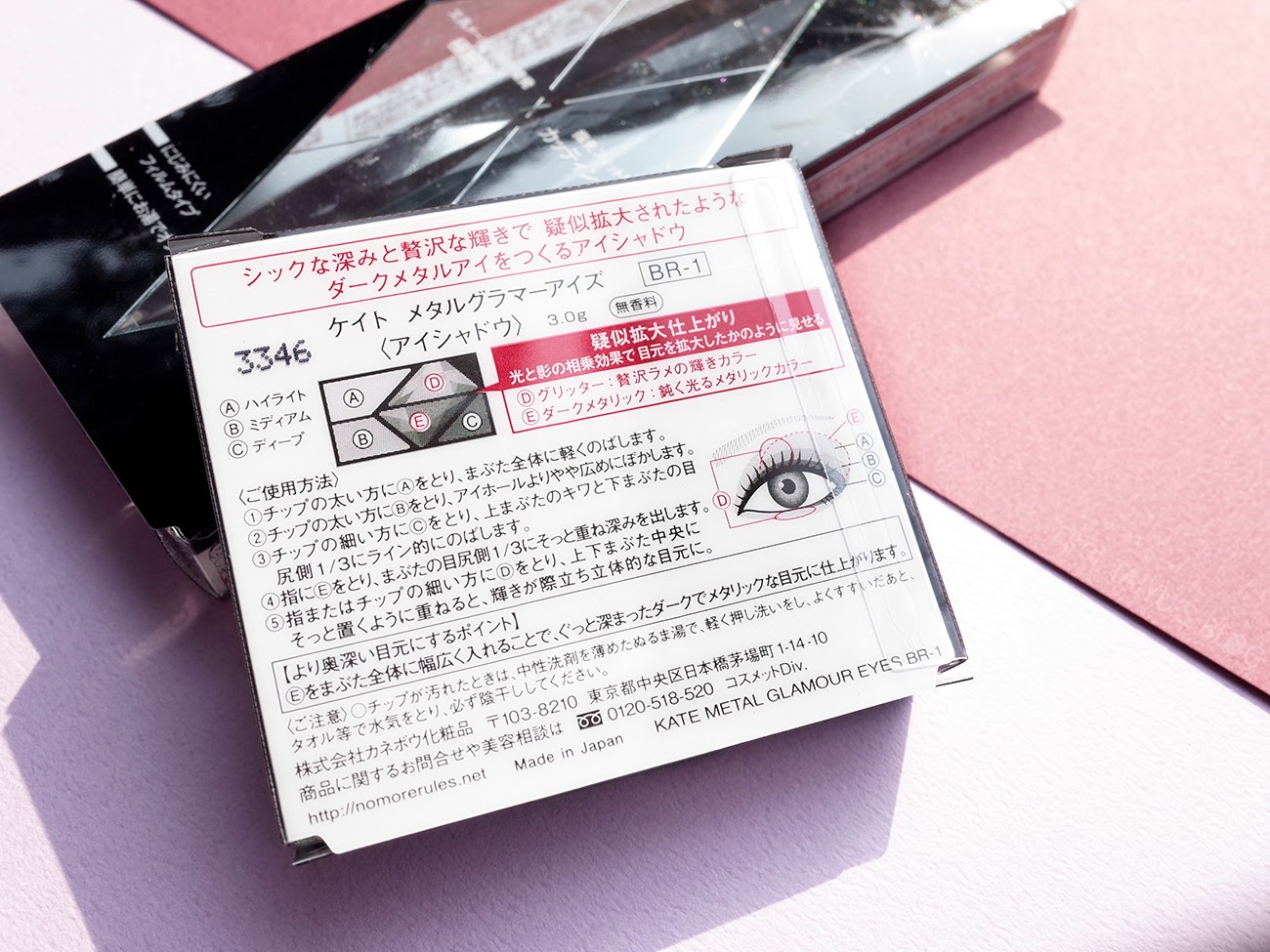 眼影盤的包裝,背後有詳細的眼影解說使用圖,