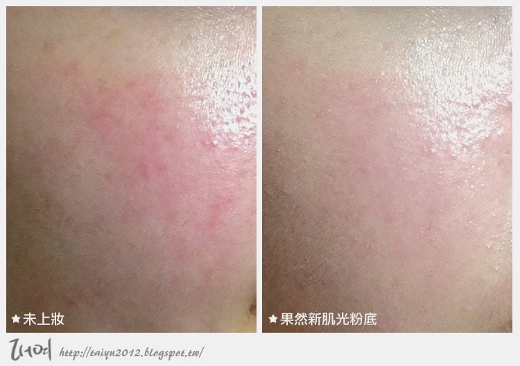 未上粉底液前,左邊明顯可以看出泛紅的肌膚,