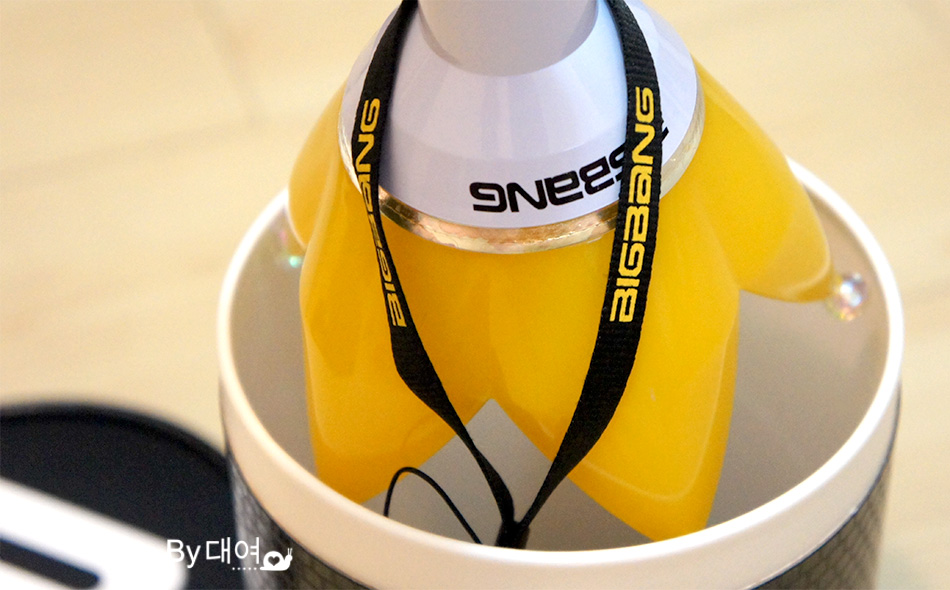 側邊印著BIGBANG金屬光感的圓筒 ![]() 還有一個B的貼紙封住蓋子以防滑落。 |