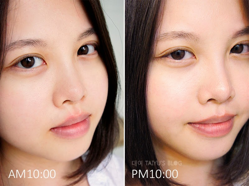 早上的粉霧感較多也較白一點,晚上則有些微出油但也不算太嚴重,