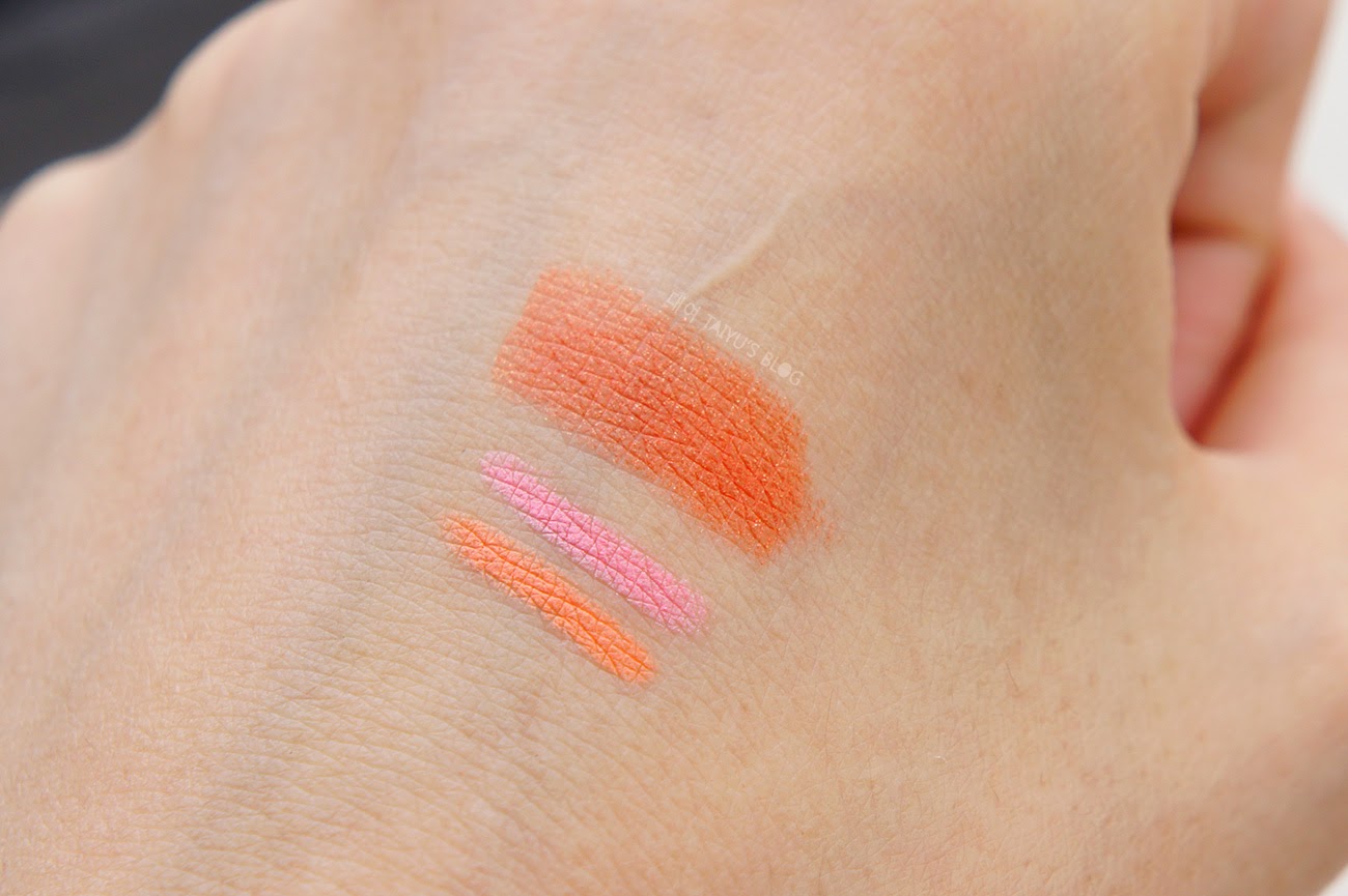 #505是深亮橘色,近看唇膏上帶點亮粉。