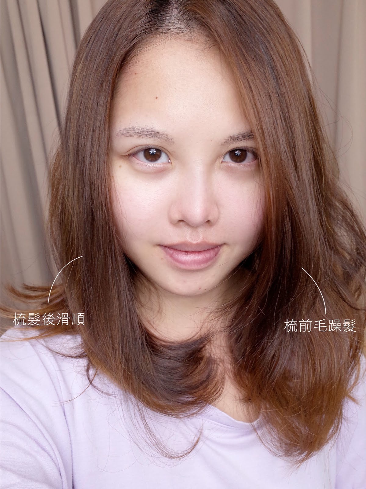 沒有梳頭髮前,我是髮尾髮質比較差因為染加燙容易打結毛躁