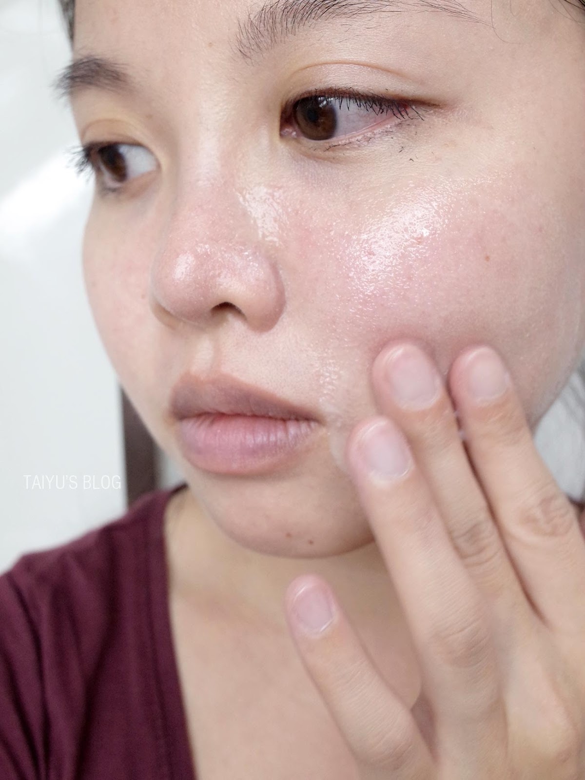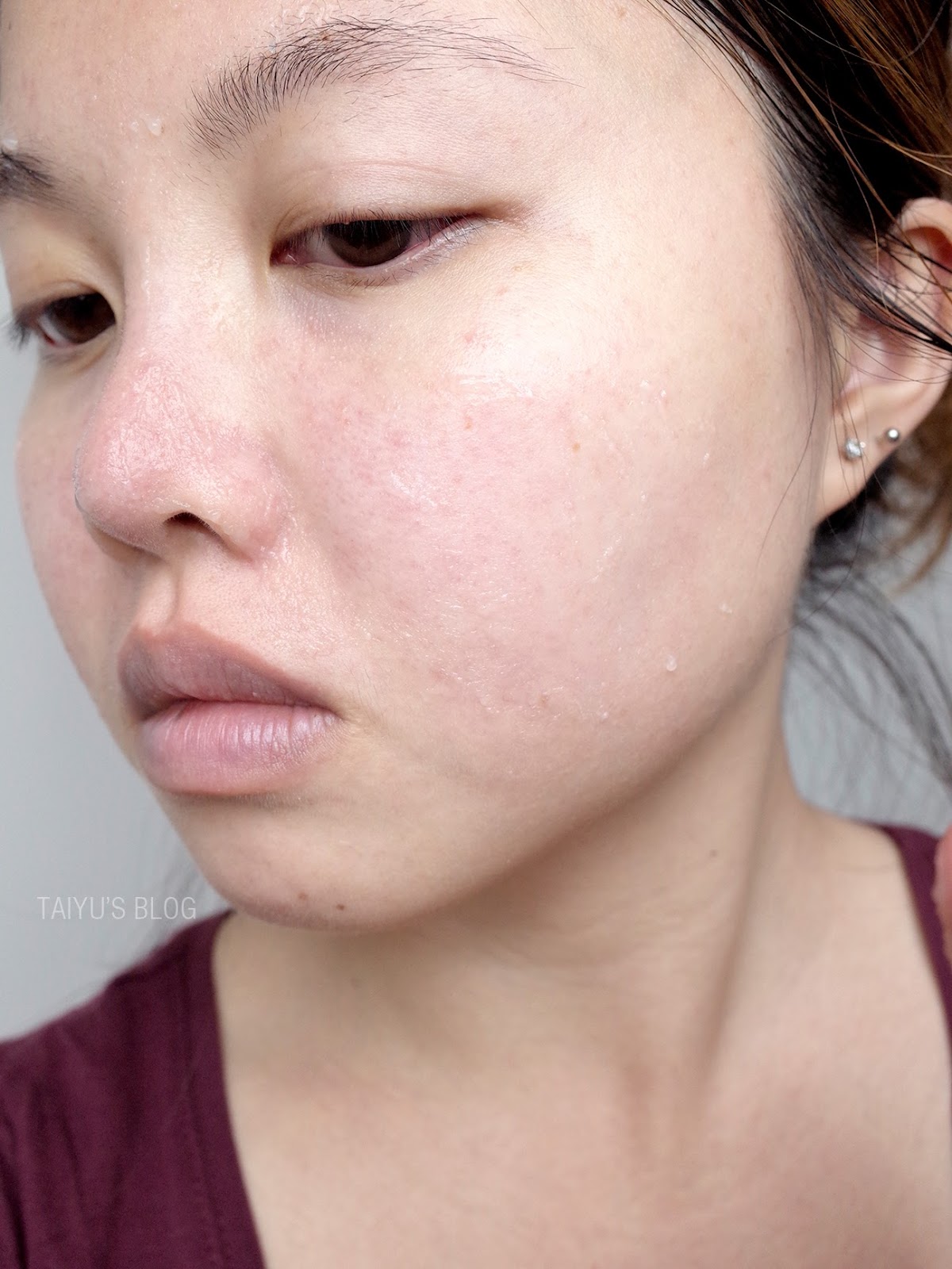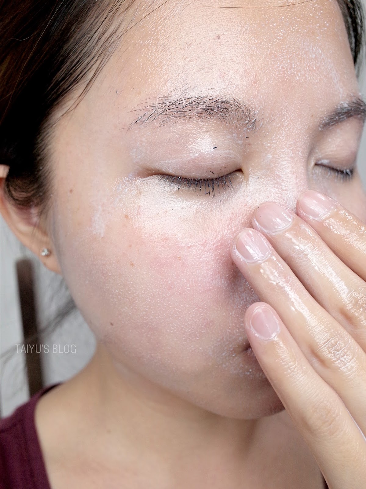 於是我把去角質凝膠的量擦去一半,然後先從臉頰開始