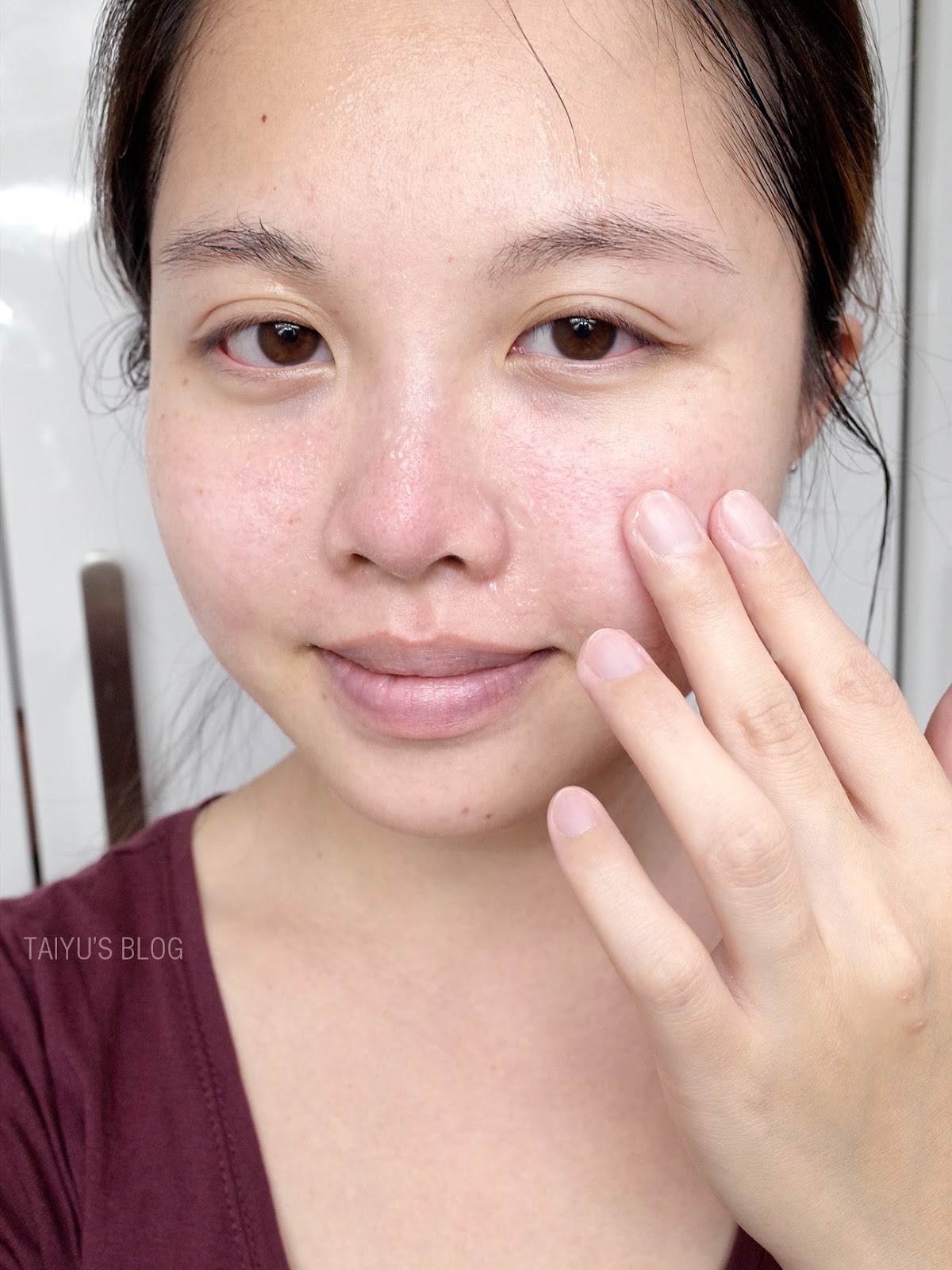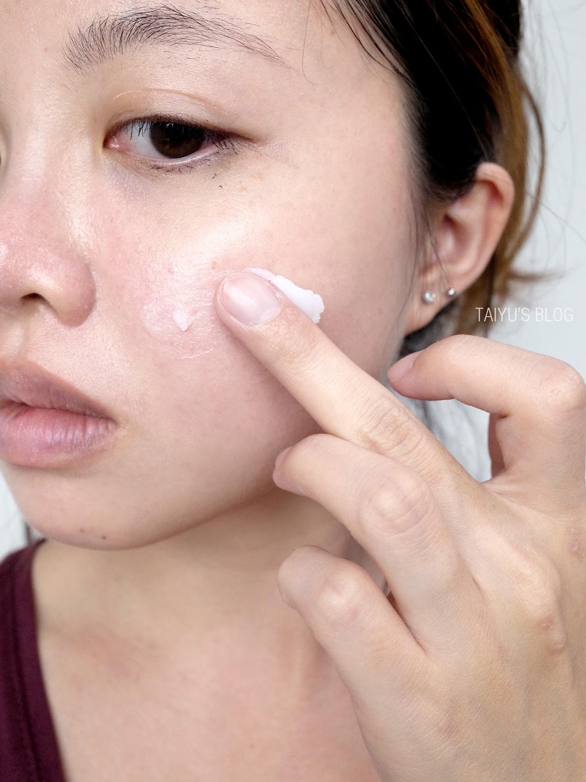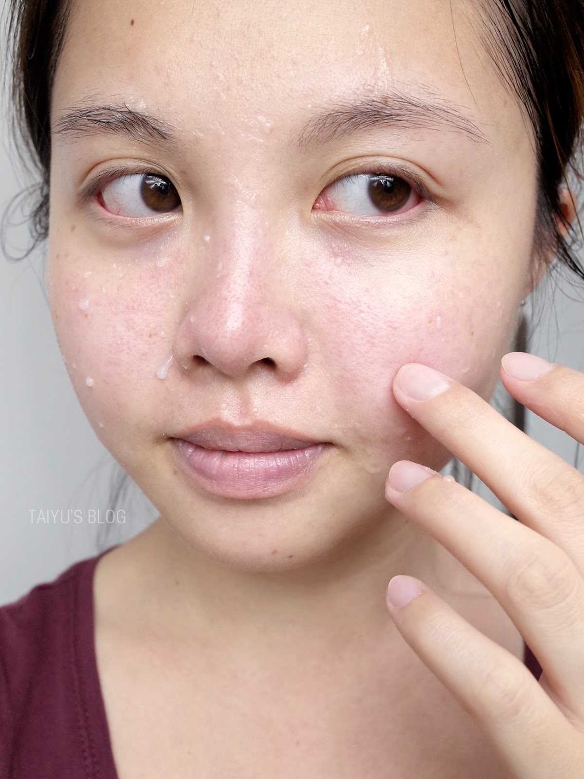 於是我把去角質凝膠的量擦去一半,然後先從臉頰開始