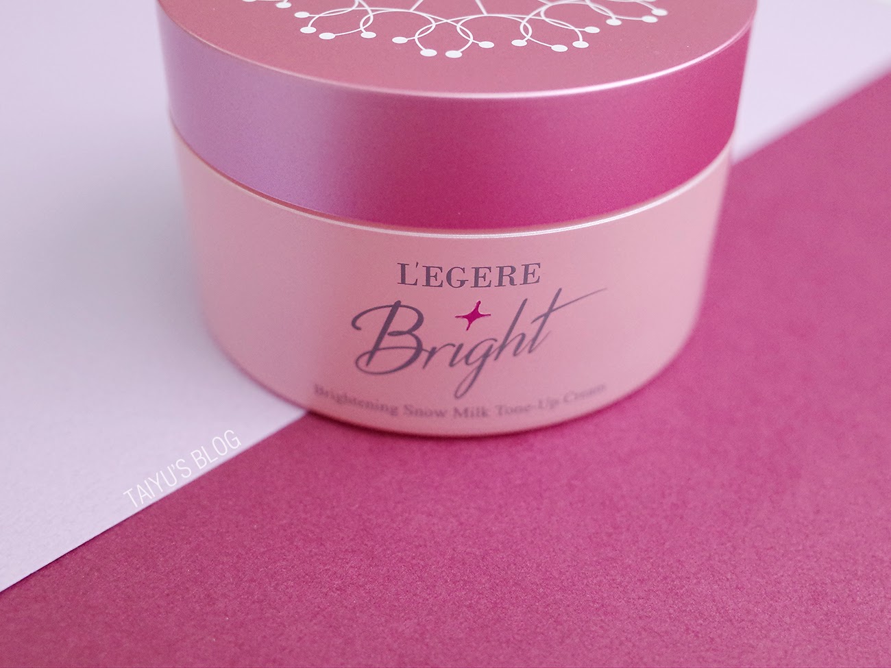 素顏霜的包裝是珠光霧面的瓶身,粉紫搭配藕粉的設計