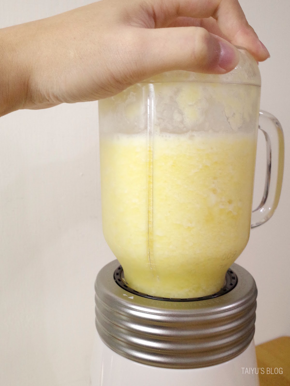 鎖緊之後插入果汁機本體有個箭頭處,