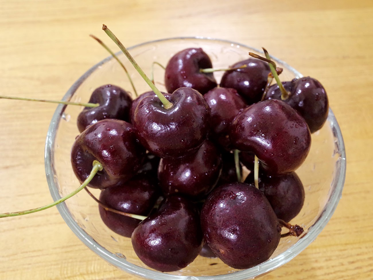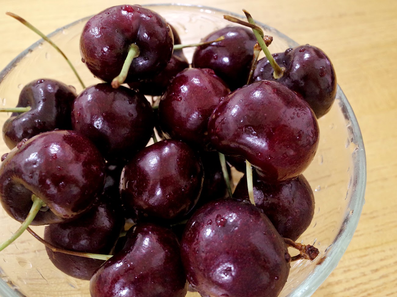 你看看顏色多麼迷人,而且櫻桃的梗都是鮮綠色來著,
