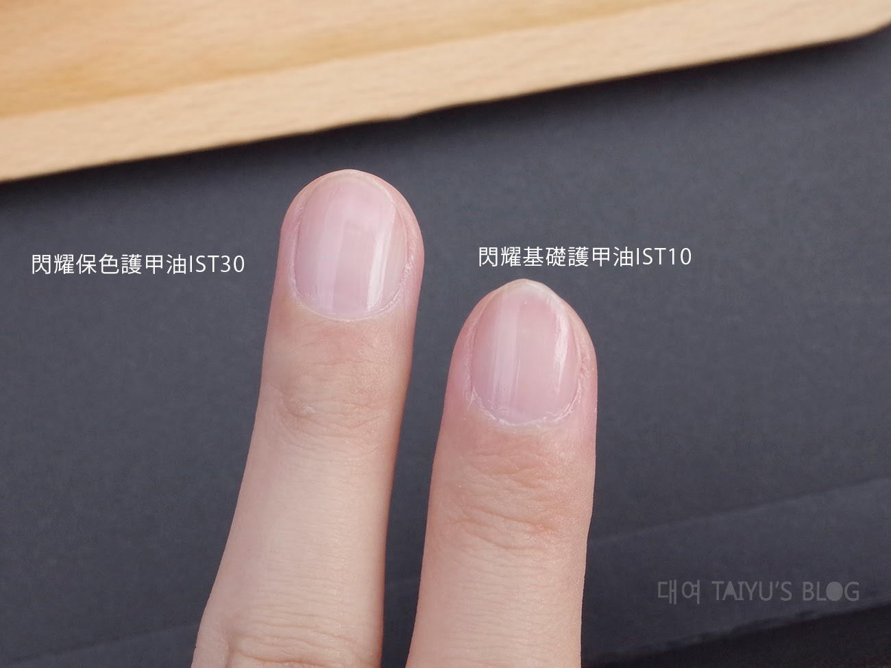 使用前後上了基礎護甲油和保色護甲油,