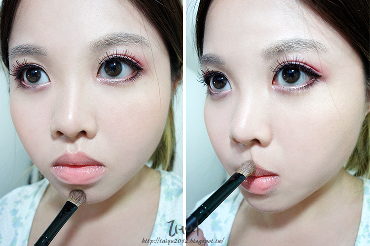 因為是春天的桃花妝所以選擇了甜蜜的粉桃色眼影,