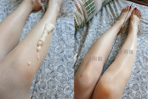 | 泡泡滿多滿細緻的,使用前後差滿多的啊!(這腿是我朋友的) |
