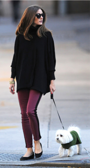 許多名媛總喜歡穿少少又包緊緊展露曲線,深怕別人不知道她的胸部或屁股,不知經過什麼化學變化,看起來總是比之前要再大一些,不過優雅的奧莉維亞可不來這一套,她日常穿衣常以「上寬下窄」的對比手法營造層次,像是用寬大的斗篷上衣、毛衣等蓋過臀部,下身則穿上合身褲裝。