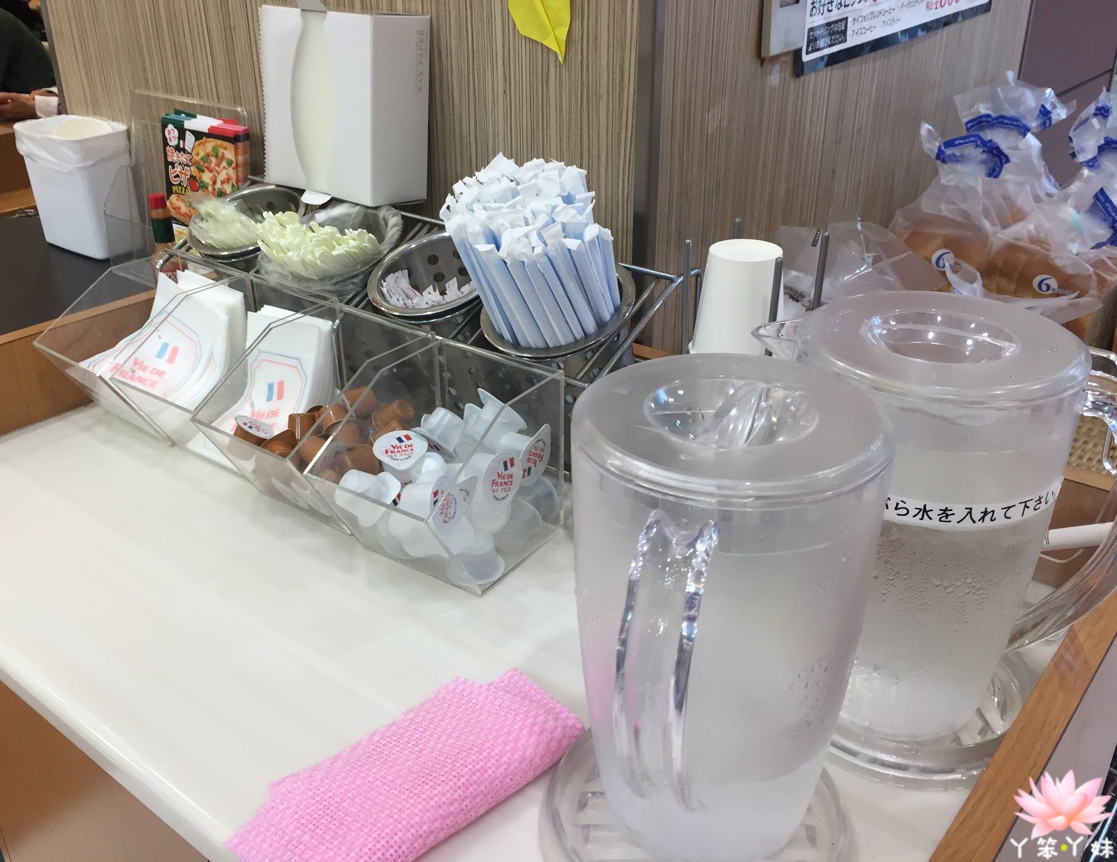 豐富的自助區,水/奶精/ 濕紙巾/ 餐具和調味料