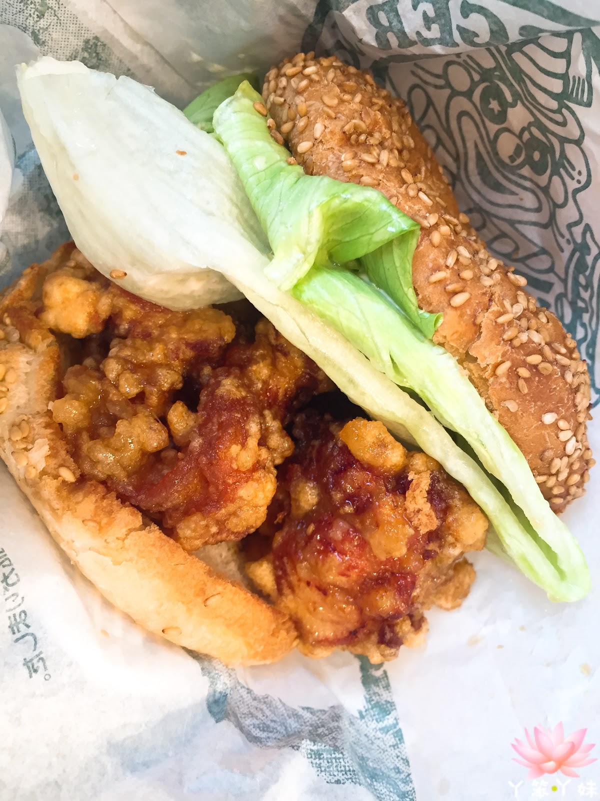 一打開果然是很紮實的面包,簡單的生菜和店家特調美乃滋醬,就很難一口咬下