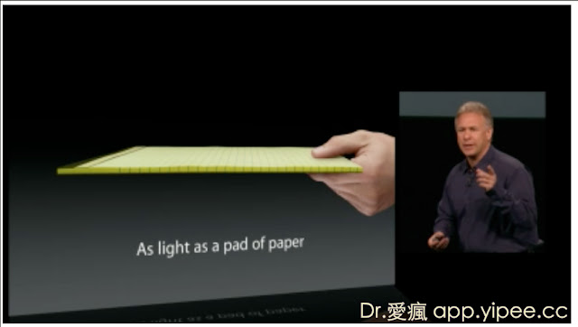 看起來有點像變大的新版 iPod Touch ,厚 0.72公分,重量則是 308克,機器變的超薄超輕