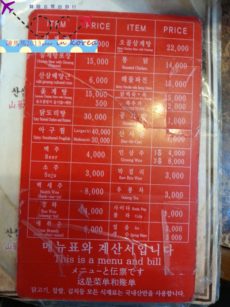 結帳卡的背面就是MENU喲!![[自助行]韓國首爾Day2-土俗村蔘雞湯、烤雞、海鮮煎餅](https://images.weserv.nl/?url=pic.pimg.tw%2Fjolin0331%2F1382690911-1096122488_n.jpg)