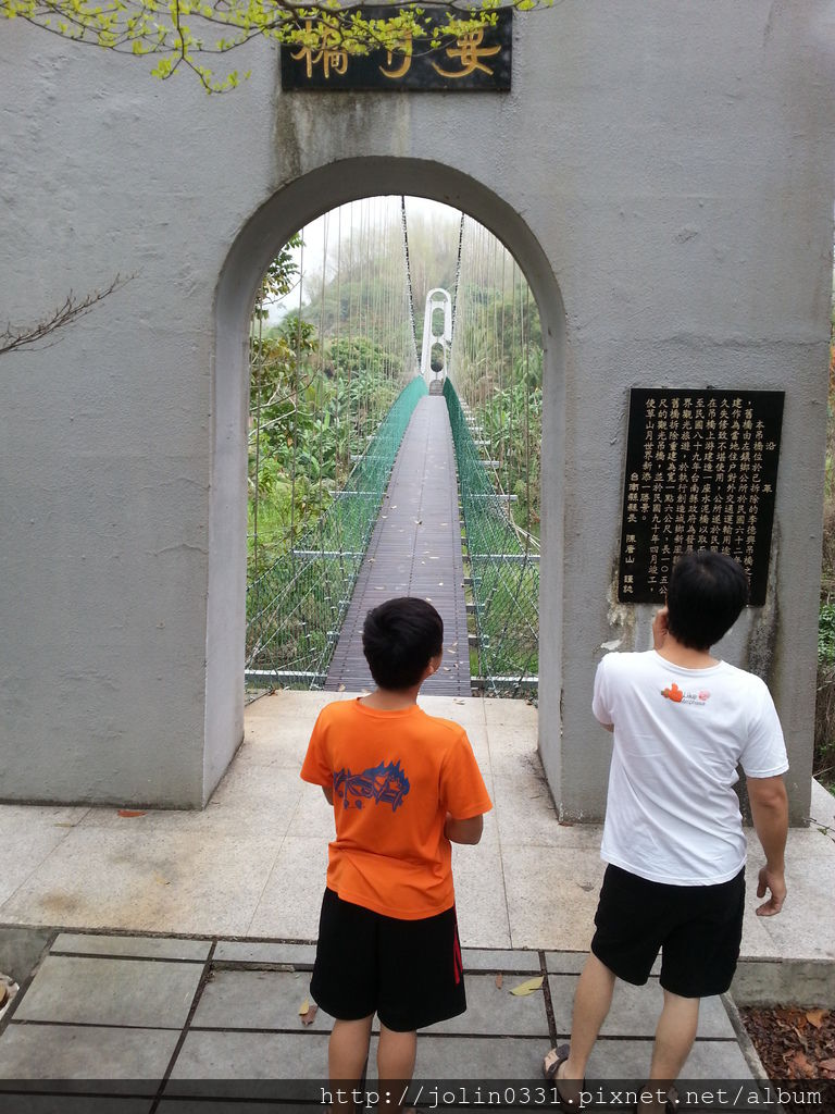 (其實是我兒子不敢走吊橋,他老爸半拖半拉要帶他去走啦