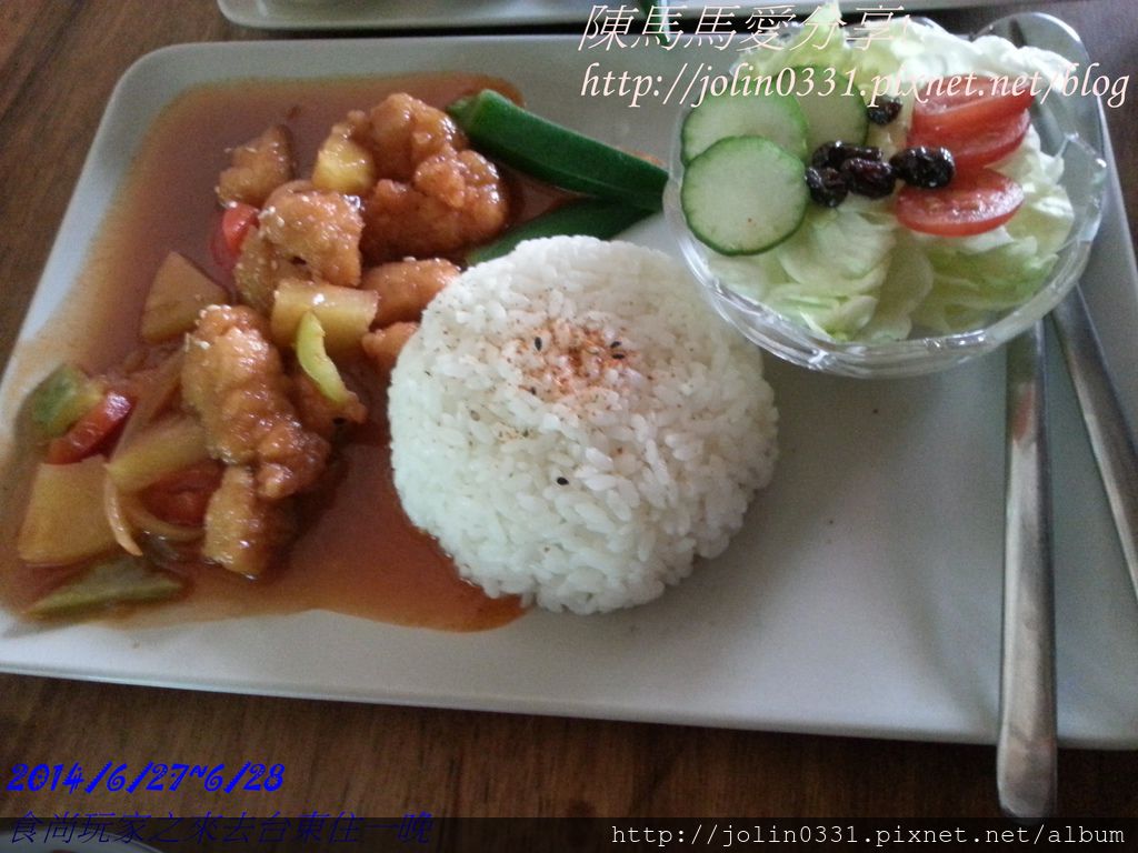 糖醋咕咕雞飯~150元(均附湯品或者紅茶)![[食記] 食尚玩家之來去台東住一晚 [台東小房子]好好吃的茴香烤豬肋排哦~~](https://images.weserv.nl/?url=pic.pimg.tw%2Fjolin0331%2F1404715859-3398822381_n.jpg)