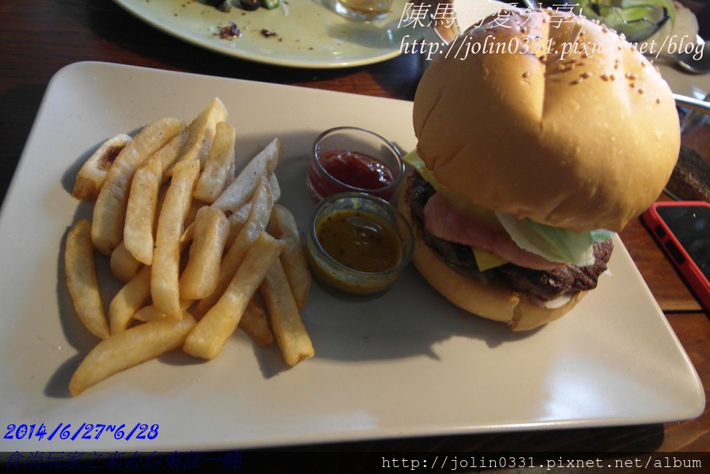 因為牛肉大漢堡真的太厚了啦!所以只好這樣子吃~呵