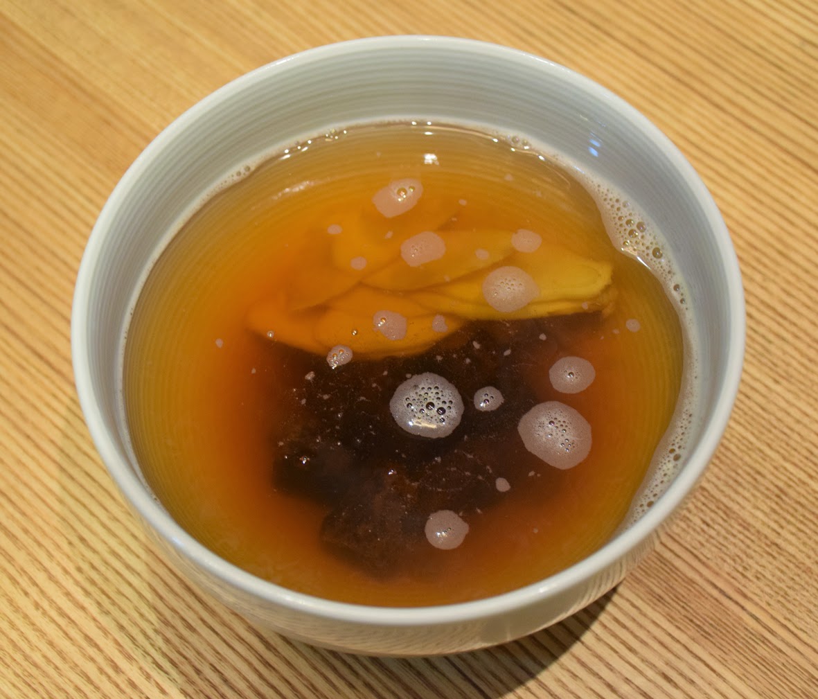 用熱水沖泡,黑糖遇熱水很快地就溶解,之後我再稍微用湯匙攪拌,就全部溶解完畢。